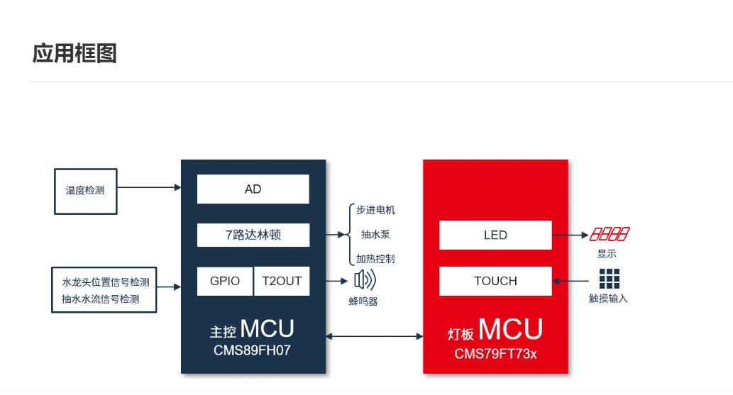 随着人们生活水平的提高,传统的茶吧机功能已不能满足需求,为此中微半导体推出可靠性高、性能稳定的茶吧机解决方案。本方案采用主板+灯板的组合,电路精简,搭配整洁美观的触控显示屏,具有多段控温、一键自动出水、一键保温、自动断电保护等特色功能。