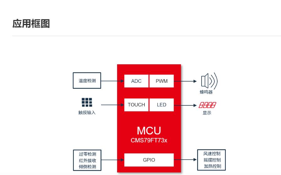 CMS79FT73x电暖器方案性能特点: